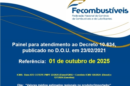 Informações para atendimento ao Decreto 10.634 - Placa de Tributos, ref. 01/10/2025