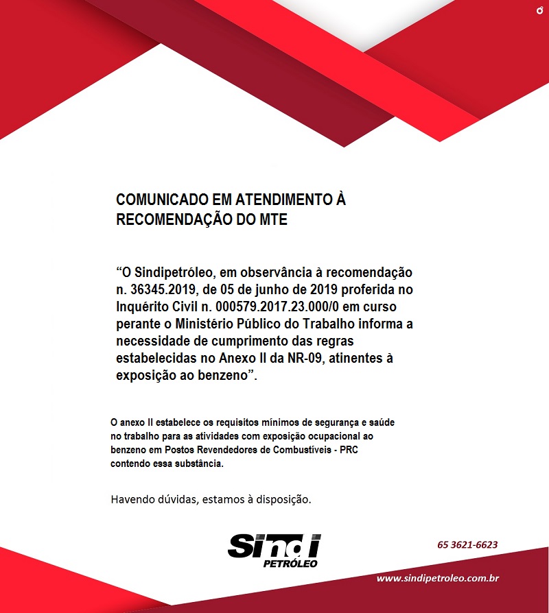 COMUNICADO CONFORME RECOMENDAÇÃO DO MINISTÉRIO DO TRABALHO E EMPREGO