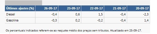 A Petrobras anuncia redução dos preços nas refinarias da gasolina a partir desta terça-feira, dia 26, em 0,3%, e do diesel em 0,4%. A nova política de revisão de preços foi divulgada pela estatal petroleira no dia 30 de junho. Com o novo modelo, a Petrobras espera acompanhar as condições do mercado e enfrentar a concorrência de importadores.